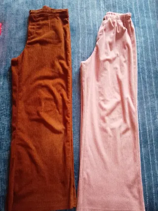 Conjunto de dos pantalones de pana, uno en color marrón y otro en rosa pálido. - Pantalón de pana marrón. - Pantalón de pana rosa pálido. - Tejido de pana.