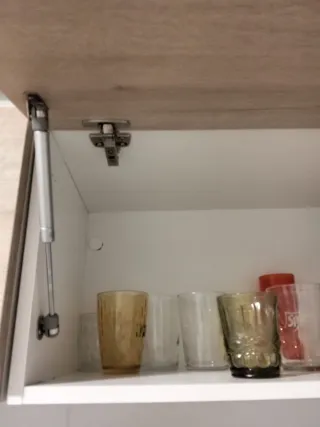 Muebles altos de cocina con un diseño moderno y elegante. - Acabado en tonos beige y marrón. - Fabricados en madera de alta calidad. Son 3 módulos iguales, uno de ellos está levantado por el lateral una esquina, se ve en la última imagen. Se venden a 35 unidad
