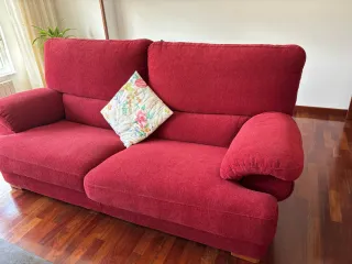 Conjunto de sofás de dos y tres plazas en buen estado y con poco uso. - Tapicería de tela. - Estructura de madera. - Precio exclusivo para la venta conjunta de los 2 sofás. - Medidas aprox.: * 2 plazas:150x95x100 * 3 plazas: 185x95x100