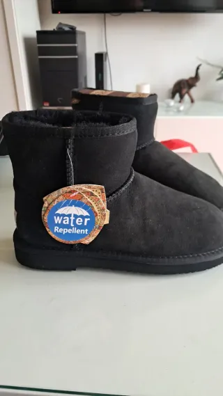 Botas de ante UGG en color negro. Perfectas para el frío y la lluvia. - Material exterior de ante. - Forro interior de pelo sintético. - Suela de goma. - Detalle de etiqueta water repellent. - Nuevas con etiqueta, fué un regalo y nunca se usaron.