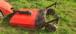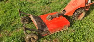 Desbrozadora acoplable a motocultor de la marca Alfa. Diseñada para facilitar el trabajo en terrenos. - Color rojo. - Ruedas para desplazamiento.