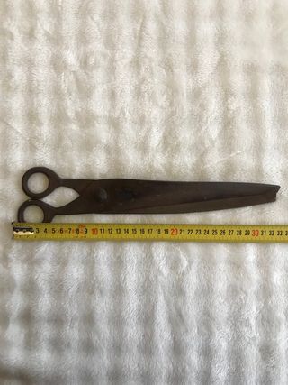 Unas tijeras antiguas con un diseño clásico. - Fabricadas en metal. - Mango con forma de anillo. - Usadas para cortar los crines a los caballos - Todavía funcionales - Hechas a mano por herrero artesano