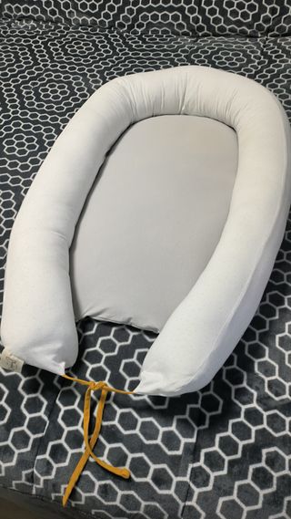 Nido de colecho en color gris claro, con un diseño acolchado y suave. Nido colecho, se puede usar como sustitutivo de la minicuna, como cuna colecho que permite dormir junto a los papás o como cuna de viaje. Se puede colocar en una cama, en el suelo o incluso en el interior de la misma cuna, de manera que el bebé quede más protegido y acurrucado. 100% algodón. - Tejido exterior con pequeños puntos blancos. - Lazada ajustable en color amarillo. - Ideal para crear un espacio seguro y acogedor.