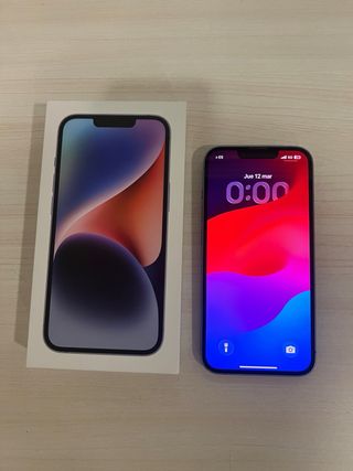 Teléfono móvil iPhone 14 en color azul, nunca reparado, todas las piezas originales y ningun arañazo ni en la patalla delantera ni el cristal trasero - 128gb -Bateria al 78% Listo para usar