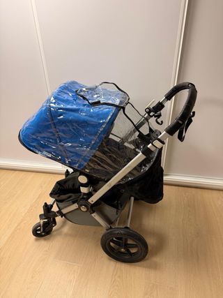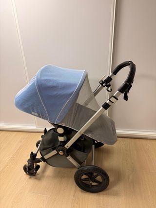 Carro de bebé Bugaboo Camaleon en color negro. Incluye dos capotas para adaptarse a diferentes ocasiones o gustos. - Chasis en color negro. - Incluye dos capotas - cubre pies de color azul y rosa bolso bogaboo color azul capota de lluvia mosquitera y saco de silla de paseo ... En buen estado. Ver fotos.