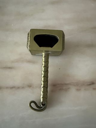 Este llavero tiene la forma del icónico martillo de Thor, Mjolnir. Además de ser un accesorio, funciona como abrebotellas. - Diseño inspirado en Thor. - Material metálico. - Incluye inscripción Whosoever holds this hammer... y Thor.