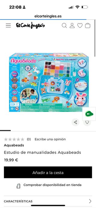 Juego de manualidades Aqua Beads para crear figuras. - Incluye caja de beads de colores. - Incluye plantilla y bolígrafo. - Solo necesita agua para pegar las beads.