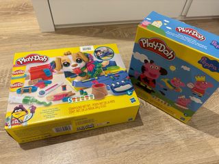 Dos sets de plastilina Play-Doh, uno de Peppa Pig y otro de veterinario. - Set Care 'n Carry Vet con accesorios para crear animales. - Set Peppa Pig Stylin' Set para crear personajes de Peppa Pig. - Incluye varios colores de plastilina.