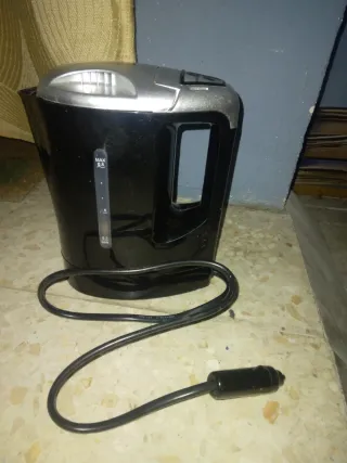 Hervidor eléctrico portátil de 12V y 0.8 litros de capacidad.170w - Diseño compacto y funcional. - Indicador de nivel de agua. - Ideal para viajes o uso en vehículos. Sin apenas uso.