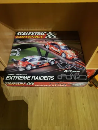 Circuito de slot Scalextric Compact Extreme Raiders. - Incluye dos coches de carreras. - Pistas para crear diferentes circuitos. - Diseñado para competición y diversión.