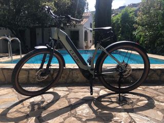 Bicicleta eléctrica Cube Reaction Hybrid Easy Entri en perfecto estado. Diseño moderno y robusto, muy polivalente para todo tipo de terrenos y ciclistas. 700 Km. Muy nueva, la vendo por no poder usar. - Cuadro de aluminio - Motor Bosch - Batería 625 - Componentes Shimano - Llantas con neumáticos todoterreno y banda marrón - Frenos de disco. - Color Lunar Grey (gris verdoso) - Talla media