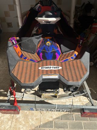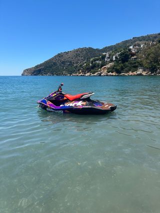 Moto acuática Sea-Doo Spark Trixx con capacidad para tres personas. Perfecta para disfrutar del mar. - Modelo Trixx. Año 2020 tan solo 115h revisada en invernada - Tres plazas. Tiene marcha atras . Alargador y todas las extras posible Carro sin documentacion Tiene lona nueva Pegatinas un poco deterioradas