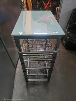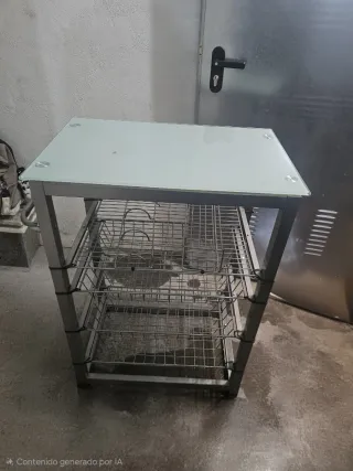 Carrito auxiliar para cocina con superficie de cristal y estructura metálica.