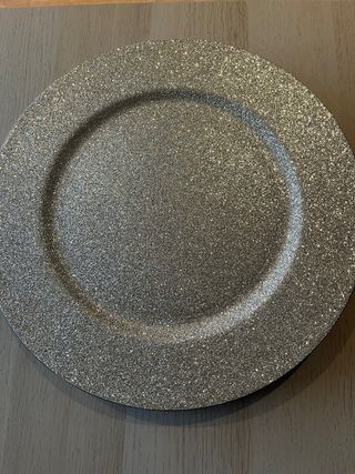 Añade un toque de brillo a tu mesa con estos bajos platos. - Diseño con purpurina. - Medida de 33x33 cm.