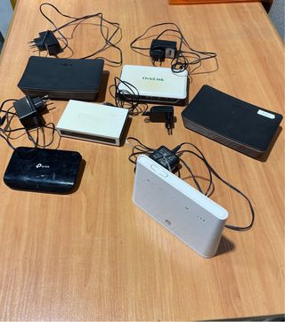 Se vende lote de routers de diferentes marcas. - Routers de red para conexión a internet. - Incluye adaptadores de corriente.
