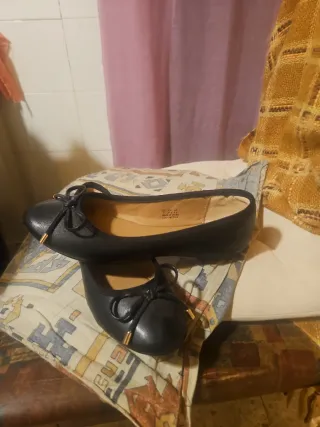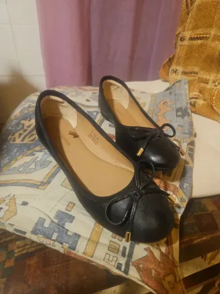 Bailarinas de polipiel con un diseño elegante y un lazo decorativo. - Material exterior: polipiel. - Detalle de lazo con adornos dorados. - Suela cómoda para el día a día.