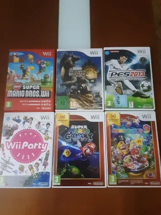 Se vende lote de 6 videojuegos para Nintendo Wii. Juegos en buen estado como se ve en las fotos. - New Super Mario Bros. Wii - Monster Hunter 3 - PES 2013 Pro Evolution Soccer - Wii Party - Super Mario Galaxy - Mario Party 9