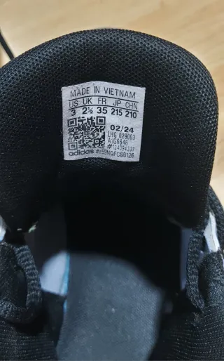 Zapatillas de baloncesto Adidas para niños. - Color lila y negro. - Cierre con cordones. - Logo de Adidas en la lengüeta. - Se han usado poco (los recibió regalo pero le venía justos ).