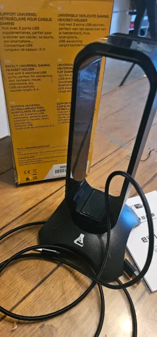 Soporte para auriculares gaming K-Stand Radon con iluminación RGB. - Diseño universal para auriculares. - Retroiluminación RGB. - Base antideslizante. - 2 puertos USB adicionales.