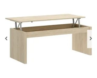 Mesa de centro con diseño moderno y funcional. Sus dimensiones son 50 x 100 x 43 cm. - Mecanismo elevable para ajustar la altura. - Amplio espacio de almacenamiento interior. - Acabado en tono natural. -Ver taras en las imágenes. - Se encuentra desmontada.