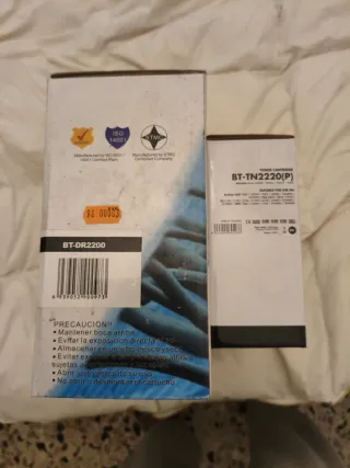 Pack de consumibles para impresora Brother compatibles. - Cartucho de tóner TN2220. - Unidad de tambor DR2200.