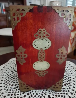 Antiguo Joyero Madera, Latón y Jade