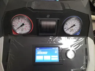 Máquina de aire acondicionado de la marca ECOTECHNICS. - Modelo ECKNEXT. - Compatible con R134a. Y 1234 - Pantalla digital con fecha y hora. - Botones de función con iconos. - Indicador de información.