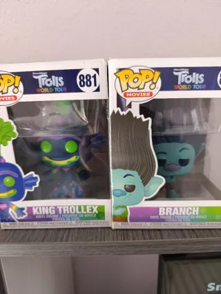 Se vende lote de dos figuras Funko Pop de la película Trolls World Tour. - Figura Funko Pop de Branch, número 880. - Figura Funko Pop de King Trollex, número 881. - Personajes de la película Trolls World Tour.