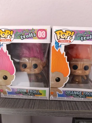 Se vende lote de dos figuras Funko Pop de la colección Good Luck Trolls. Combina con otros productos de mi armario - Figura Pink Troll, número 03. - Figura Orange Troll, número 04. - Figuras de vinilo.