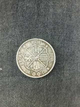 Moneda de 100 pesetas del año 1966. Presenta el perfil de Francisco Franco. - Año: 1966 - Denominación: 100 pesetas - Anverso: Francisco Franco Caudillo de España por la G. de Dios