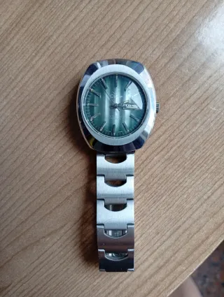Cliper 21 jewels incabloc, con las mismas características de resistencia y complicaciones que el anterior, con waterproof 3atm, y correa Y de OEM. Datado de 1973 y 1977 por las características de segundero y día en rojo. Brazalete integrado, acero inoxidable real no cromado, laterales pulidos y planos cepillados. Esfera fume marrón/verde oliva. Minuteria perimetral tipo rail. El sistema es híbrido puesto que es automático y de cuerda simultáneamente.Precio negociable y posibilidad de lote con los otros del perfil.