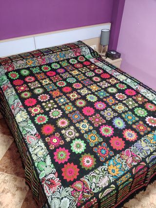 Colcha de cama flores de colores Vintage. Con flecos negros. En perfecto estado. Mide 226 x 220. #vintage #cama #flores