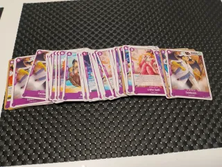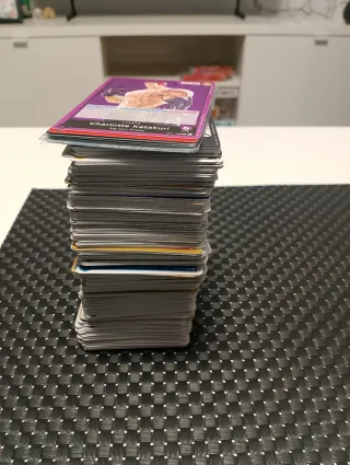 ***Si,como has visto más de 320 cartas*** Lote de aproximadamente unas 320 cartas,diria que hay un par más. Vienen de regalo dos Raras, una SR y un Don especial. Las tres en fundadas y con dos toploaders de regalo. Prácticamente viene el core del deck de Katakuri violeta - Piratas de Big Mom y también el core de la princesa Shirahoshi. Hay todas estas cartas: -22 cartas negras. -57 cartas rojas. -49 cartas azules. -58 cartas amarillas -69 cartas violetas. -2 lideres. -10 Dones (No he sumado las de regalo 4 cartas de regalo) Van muy bien para hacer cores distintos, completar decks, probar cosas distintas y coleccionar.