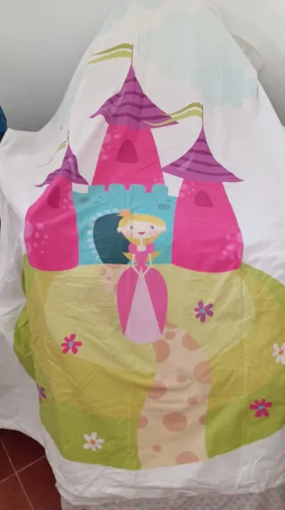 Funda nórdica con un divertido diseño de castillo y princesa para cama individual. Dale un toque mágico a la habitación. Pequeño defecto por un hilo. - Diseño de castillo y princesa. - Ideal para cama individual.