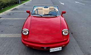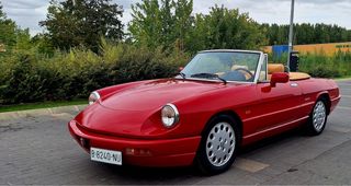 Alfa romeo spider serie 4 - 115A1 del año 1991, motor 2l.Neumáticos nuevos, mangueras y bujes cambiados en 2023. Lo vendo con el techo rígido desmontable y el techo de lona. El velocímetro ya no funciona, lo cual es necesario para pasar la ITV, pero todo lo demás funciona. Lo vendo porque no conozco a nadie que lo repare, pero si es necesario, sé dónde conseguir piezas originales. No tengo tiempo que perder, así que si no te lo puedes permitir, no me contactes.Tiene matricula de España. Muy importante: si acordamos un encuentro para ver el coche, acordaremos una hora, no tendré tiempo de esperarte, aunque tengas una excusa, aunque vengas de lejos, aunque hayas cogido el camino equivocado, la salida equivocada….