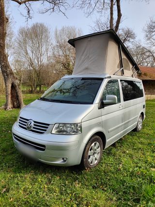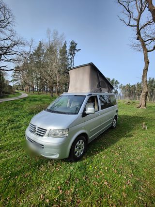 Volkswagen california t5 comfortline(la mas equipada) 2.5 tdi 130 cv Vehiculo nacional y en perfecto estado tanto de motor como toda la zona camper ,muy mimada ,mantenimientos cada 15000 kilometros. Se acepta prueba mecanica sin problema. 90% del kilometraje hecho en autovia,duerme siempre en garaje. 2 baterias de la zona camper cambiadas hace un año y de 100 amperios cada una. .Calefaccion estacionaria .Asientos delanteros calefactables .Sensor de aparcamiento .2 camas .Fregadera .Frigorifico .Asientos delanteros giratorios .Mesa interior y exterior .2 sillas integradas en el porton .Deposito de aguas limpias y grises .Portabicicletas para 3 bicis .Toldo thule omnistor(metido ya en ficha tecnica) Regalo avance outwell country road que se ve en la foto. Regalo funda impermeable thais para el techo que se ve en la foto.