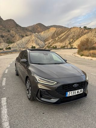 FOCUS BERLINA ST-LINE X 1.0 EcoBoost MHEV 92KW (125CV) S6.2 Vehículo en estado impecable, siempre de un solo propietario particular y cuidado con el máximo mimo. Se encuentra prácticamente como nuevo, tanto a nivel mecánico como estético, sin detalles a destacar. Todas sus revisiones y mantenimientos se han realizado correctamente en Ford, garantizando un funcionamiento perfecto. Se trata de una versión full equip, con prácticamente todos los extras disponibles, que se detallan a continuación. Coche listo para disfrutar desde el primer día, sin necesidad de hacerle nada. **EXTRAS** Color Gris Magnetic Tapizado Tapicería exclusiva ST-Line Techo panorámico open- air SAARLOUIS PLANT BUILD Rueda de Repuesto mini Botón E-Call (Sistema de llamada de emergencia) Ice Pack 70 Head-up Display Faros Full LED adaptativos - PAQUETE DISEÑO ST-LINE Alerón trasero Single Wing-Grande (BPFAH) • Pinzas de freno-pintadas (FBBAM) • Pedales metalizados (CGEAE) • Placas de protección delanteras ST-Line (A1PAL) - Paquete Parking Sistema de aparcamiento asistido con transmisión manual • Sistema de aparcamiento asistido con transmisión automática • Cámara de visión trasera de alta resolución • Protectores de borde de puerta - PAQUETE DE INVIERNO Parabrisas térmico Quickclear (B?MAB) • Volante calefactado (GTBAB) • Asiento del pasajero calefactado (BY2AB) • Asiento calefactado del conductor (BY1AB) - PAQUETE TECNOLÓGICO Aviso y Ayuda de Cambio de Carril (HLNAC) • Alerta al conductor (HLFAB) • Alerta de tráfico cruzado con frenado activo (HNYAC) • BLIS (Sistema información puntos muertos) cobertura remolque • Control au tratátic LAges largas (JEDAF) * Control de crucero adaptativo (GTDAC) * Reconocimiento de señales