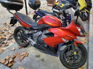 Kawasaki ER6F ABS color naranja año 2011. 1 solo propietario. Dispone de revisiones mecánicas anuales. ITV hasta 2027. Funciona perfectamente. El asiento tiene que retapizarse y tiene un pequeño golpe en carenado. Viene con cofre trasero, aunque se entrega con agarraderas originales también, así como pinza para disco de freno. Ubicación: Arenys de Munt