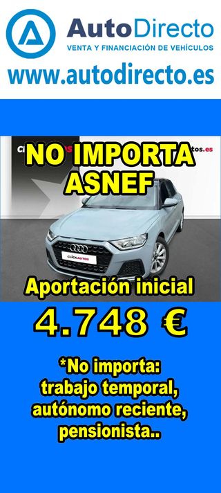 ¿No consigues financiación? ¡Tenemos la solución! RENT CREDIT (Alquiler con opción a compra) *************************************************************************** ✅ Aprobamos más del 95% de las operaciones. ✅ No importa ASNEF o RAI, impagos pendientes, ser autónomo o empresa reciente, ser pensionista. \\n ✅ Imprescindible aportación inicial del 20%. ✅ Ejemplo de operación: AUDI A1 SPORTBACK 30 1.0 TFSI 116CV ADVANCED. Ref. W958121NBK - Precio vehículo: 23740 €. - Aportación inicial de 4748 €. - Cuota mes desde 494 €. ✅ Impuesto de circulación y garantía de 1 año incluidos. *************************************************************************** ✅ Más de 3.000 VEHÍCULOS EN STOCK. ✅ Kilómetros certificados. ✅ 17 concesionarios repartidos en toda España. ♻️ Aceptamos tu coche como parte de la operación. *************************************************************************** IMPORTANTE: -. Este anuncio, no es vinculante, puede contener errores. SE MUESTRAN A TÍTULO INFORMATIVO Y NO CONTRACTUAL. -. Consultar disponibilidad del vehículo y datos exactos: fecha de matriculación, importes, etc,... *************************************************************************** Te ofrecemos distintas opciones: Venta al contado, financiación, renting, RENT CREDIT (Alquiler con opción a compra).