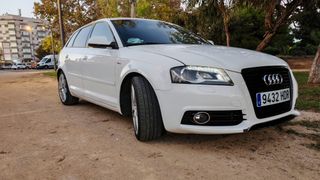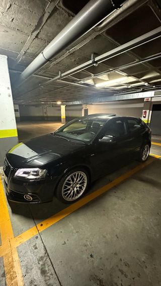 Audi a3 8P -paquete ambition -interior/exterior S-Line -llantas 18" S-line -volante multifunción achatado -suspensión de serie deportiva -asientos cuero/tela S-line -intermitentes dinamicos -retrovisores look RS -Taloneras s3 -luz matricula Led -cortas/largas led blancas -luces interior led blancas -aceite y mantenimientos al día -aceite y filtros menos de 1.000 km -2º Propietario -pintado recientemente -kilometros hechos mayoritariamente en autovía -ruedas 70% -pastillas delanteras recién cambiadas Consumo bajo 4/5L muy cómodo para uso diario y viajes