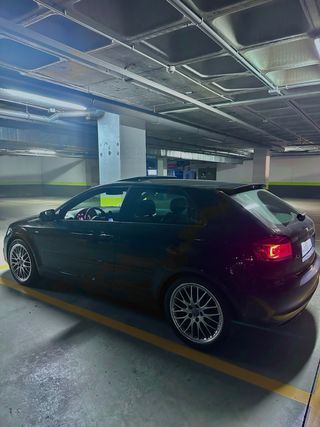 Audi A3 8P Full S-Line , tanto exterior como interior. Coche muy cuidado, con mimo y al día de todo. Color blanco original, ahora vinilado a dos tonos (morado y blanco). Si se quiere, se entrega sin el vinilo. *ITV en vigor hasta Diciembre 2026 *Discos perforados y pastillas brembo Nuevos. * Defensa delantera RS3. * Faros Bixenón con una luz brutal. * Asientos de cuero S Line en perfecto estado. * Techo panorámico. * Cambio automático y manual con levas, como se ve en las fotos. * Pantalla táctil Android con Bluetooth. * Suspensión Bilstein B12 montada. * Volante achatado. *Si se quiere se puede entregar también dowpipe + intermedio recto. (lleva montado lo de serie) * Neumáticos nuevos recién montados (225/40/R18) Yokohama Advan Sport. Mantenimientos al día, siempre con aceite y filtros a su hora. Un coche completo, cuidado y con presencia. Cualquier duda o si se precisan más fotos, las paso sin problema.