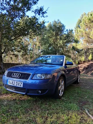 Audi A4 2.4 v6 cabrio en perfecto estado todas las revisiones hecha aceite filtros correa bujias etc itv hasta junio del 2026 asientos de piel electrico calefactable , capota electrica , c.c e.e clima bizona sensores de aparcamiento , pantalla con car play con opcion de poner camara trasera , y control de velocidad bien cuidado