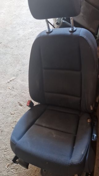 Asiento de coche de tela negra, con reposacabezas ajustable. - Tapicería de tela. - Reposacabezas. - Cinturón de seguridad.