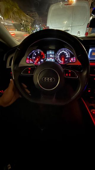 MANTENIMIENTO COMPLETO EN AUDI NOV 2025 Audi A5 Sportback (2016) en muy buen estado, todas las revisiones en Audi Cilindrada: 10 (150) kW (CV) Multitronic Norma de emisiones (según 94/12/CE): EU6 Emisión media de CO₂: 119 g/km Pack Prestige • Pintura metalizada • Sistema de asistencia de aparcamiento acústico trasero • Control de crucero • Alarma volumétrica y perimétrica • Navegador GPS Plus con disco duro • Tornillos antirrobo • Interior en cuero Milano • Asientos delanteros calefactables • Retrovisor interior con función antideslumbramiento automática • Retrovisores exteriores con ajuste y desempañado eléctricos, plegables eléctricamente • Luz LED (anillos Audi para motores con tracción delantera o logo quattro para motores quattro) proyectada en la base de las puertas delanteras • Asientos delanteros ajustables eléctricamente con función de memoria para el asiento del conductor: Memorización de dos posiciones diferentes del asiento del conductor y de los retrovisores exteriores. •Asistencia de aparcamiento delantera y trasera (APS) con cámara de marcha atrás y visualización en la pantalla MMI, incluyendo líneas de guía dinámicas según la posición del volante. Manecilla del maletero trasera integrada discretamente. •Llantas de aleación ligera de 5 radios, diseño 7,5 × 17 •Alarma volumétrica y perimétrica con Safelock y sistema Advanced Key •Pack Assistance 2: • Audi side assist • Asistencia de aparcamiento delantero y trasero (APS) con visualización en pantalla