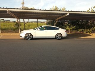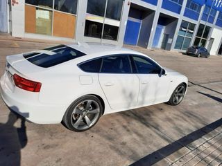 Audi A5 sportback muy deportivo y comodo para viajar en el y con exterior con casi todo en negro brillo que lo hace muy elegante y deportivo a la vez,con parrilla de abeja y sus simbolos pintados en negro tanto delante como el de atras, llantas arceo valencia en negro brillo 18” sin nungun roce ( estan nuevas),difusor trasero del rs5 con doble salida, lado derecho es salida falsa (la salida falsa la puse para la estetica del coche que compre el difusor trasero con doble salida y le puse una cola falsa por rapidez)de chapa y pintura en perfecto estado y el interior en perfecto estado, maletero muy grande. Extras: velocidad crucero, sistema Hill Holder (ayuda en cuesta a salir), star o stop, control remoto de audio en el volante, sensor trasero, alvoces en perfecto estado, aire acondicionado en perfecto estado, volante multifuncion revestido de cuero, asientos de tela en perfeto estado, 6 velocidades, lo doy con cambio de aceite nuevo, tiene nuevas las pastillas del freno y los amortiguadores, 2 ruedas al 90% y dos ruedas al 80%. Pasa la ITV Sin ninguna leve ni graves, coche en perfecto estado, muy cuidado y mimado, siempre en cochera ( gente seria ) Lo doy con la distribución de la correa hecha, cambio de aceite y ruedas nueva.