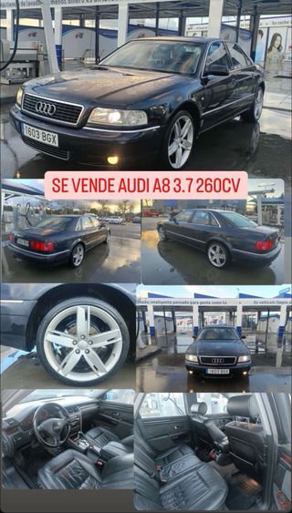 Se vende Audi A8 3.7 gasolina 224cv. El coche de motor e interior esta en perfecto estado. Dispone de itv hasta marzo. Llantas en 20 pulgadas. De chapa estaria un poco feo. Por lo de mas esta perfecto listo para circular. Se recoge vehículo como parte de pago.
