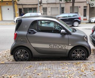 Smart Fortwo Electric Drive Prime. Revisión recien efectuada ( factura 28 febrero 2025). Matriculación en diciembre de 2017. Techo solar. Asientos en piel. Asientos calefactables. Pantalla multifuncional/Gps/ Android auto. Asistencia de aparcamiento y cámara trasera Aviso de cambio de carril. Control de velocidad. Función de conducción Eco para optimizar la autonomía. Sistema de audio y altavoces JBL. Extra de caja de subwoofer JBL. Autonomía ciudad 160 km. Autonomía mixta 120 km. Nivel de equipamiento Prime (+1.506 euros), con carrocería pintada en color gris mate oscuro y las llantas Brabus de 16'. ITV hasta febrero 2026.