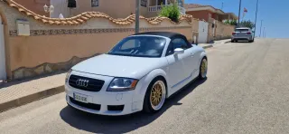 REF: 1087 Audi TT Roadster 1.8 Turbo 180cv con llantas de 16". Se entrega con el mantenimiento de motor (aceite y filtros) y con la ITV pasada. Correa de distribución cambiada recientemente. Dispone de 2 llaves. Somos Concesionario MultiMarca, especializados en marcas alemanas BMW, AUDI, MERCEDES, MINI. Estamos ubicados en calle Torras i Bages 28 de Figueres en la provincia de Girona. Todos los vehículos se entregan con cambio de nombre incluido en el precio y 12 meses de garantía legal. Aceptamos su coche como parte de pago y también hacemos financiación a medida y entregamos en cualquier punto de la península. ***EQUIPAMIENTO EXTRA*** - Pintura metalizada - Faros Xenon - Sistema de audio chorus (Radio/Cassette) - Altavoces activos - Sistema información conductor (FIS) - Climatizador automático - Acabado interior: cuero - Derivavientos ocultable eléctricamente ***EQUIPAMIENTO SERIE*** - Carrocería: 2 puertas - Retrovisor exterior regulable eléctricamente y calefactable, ambos - Retrovisores exteriores convexos, derecha - Retrovisor exterior esférico, izquierda - Retrovisor exterior y Agarraderos de la puerta ext. en color carrocería - Luces antiniebla integrad. - Eyectores de líquido limpiaparabrisas calefactable(s) - Spoiler trasero - Lunas atérmicas tintado en verde - Parabrisas con banda filtro solar arriba - Indicador de la temperatura exterior - Airbag conductor/acompañante - Airbag lateral delante - Calefacción del asiento delante - Asientos deportivos - Asientos delante regulable en altura - Elevalunas eléctric. delante - Cierre centralizado con Mando a distancia - Inmovilizador (electrónico) - Sistema antibloqueo (ABS) - Rueda de repuesto de emergencia - Volante (deportivo/cuero - 3 radios) - Columna de dirección (Volante) regulable en altura - Dirección asistida - Diferencial autoblocante electrónico (EDS) - Regulación antideslizante (ASR) - Programa electrónico de estabilidad (ESP) - Tipo transmisión: Tracción delantera - Caja de cambios 5-marcha - Motor