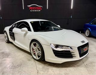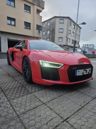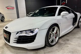 Espectacular Audi R8 5.2FSI V10 525CV Matriculado por primera vez en marzo de 2009 e importado en julio de 2015 ITV recien pasada Cambio automatico con levas y tracción QUATTRO Paquete carbono interior y motor Asientos en cuero camel y calefactables (raro de ver en coches nacionales) Radio Kenwood con Apple CarPlay y AndroidAuto (No original pero bien conectada) Cámara de marcha atrás y sensores traseros y delanteros En perfecto estado de conservación tanto interior como exterior Volante multifunción Luces automaticas Llantas en 19 con semislicks
