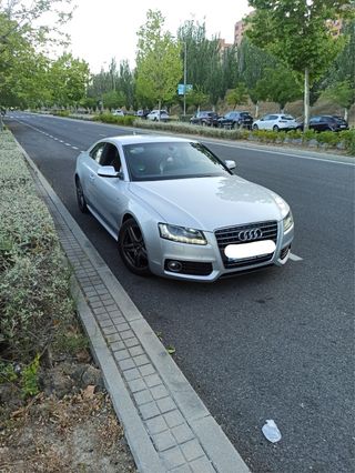 Vendo Audi A5 2.0 Tfsi,180cv,buen estado general,desperfectos en parachoques delantero y trasero pocos rayones , ruedas , de pintura bien en general , muy cuidado el interior, recién cambiadas pastillas traseras y mantenimiento general,Iluminación ambiental en puertas y pies,último tramo de escape homologado con Colas Akraprovic,asientos de cuero y tela cuidados,climatización bizona,espejos eléctricos,faros bixenon y paquete Sline original. PRECIO NEGOCIABLE